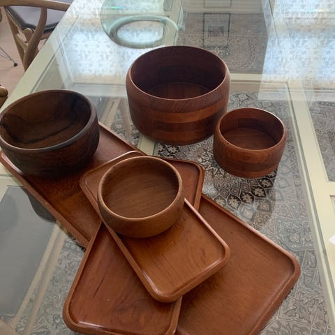 Skåle og fade i teak, Burmateak, En lille samling skåle og fade i teak (burmateak) sælges.