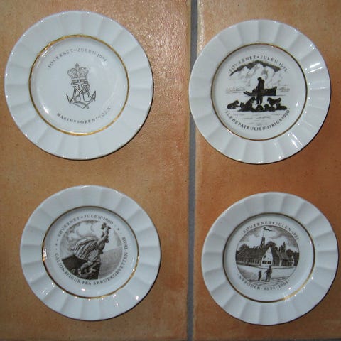 Søværnets juleplatter / askebægre, Kongelig porcelæn, Store blå årgang 1955 til 1987, 55 - 68 Amanda 69 - 87 kongelig porcelæn. De små hvide årgang 65 - 67 og 69 - 78 , 80 - 81 og 83 - 87. Alle i flot tilstand ingen skår eller ridser.