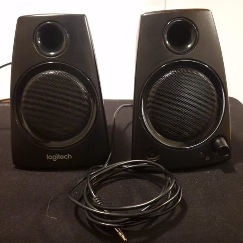 Computerhøjttalere, Logitech, Perfekt, Sæt højttalere med indbygget forstærker. Inkl. strømforsyning.