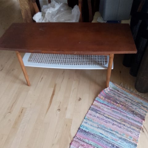 Sofabord, Okslund, teaktræ, b: 60 l: 110 h: 45, smukt Okslund sofabord i akasietræ købt i Jysk for tre år siden sælges. Det er velholdt og fejler ikke noget. Bordben af sort metal, kan justeres