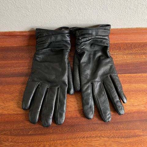 Handsker, Skindhandsker, Ved ikke, str. Normal til stor damehånd. , Sort, Læder med for, Næsten som ny, Tror det er str 7- 7,5