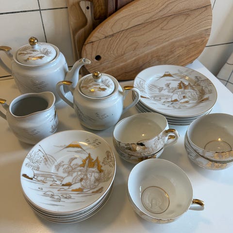 Porcelæn, Kagetallerken, Hayasi Kutani, Fint japansk kutani-porcelæn. Yndigt håndmalet motiv med gulddetaljer. Lidt slidt i kanten, dog uden skår.