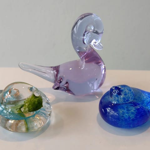 Fine fugle af glas og keramik.
