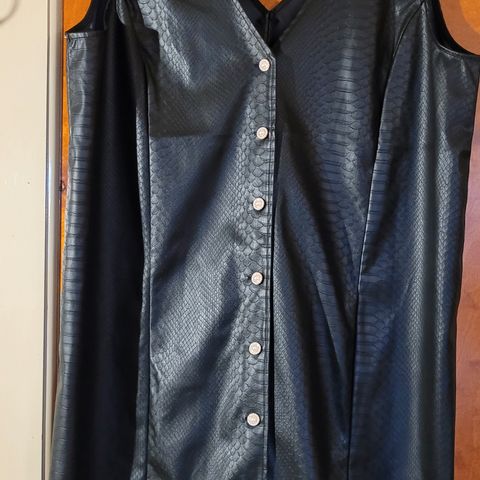 Lynlås og trykknap i hals. Bindebånd i taljen. Små sidelommer og pyntelommer.