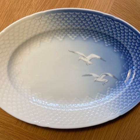 Porcelæn, kagefad, skål, fad, B og G , kongelig porcelæn, sjældent Porcelænsfad, kagefad, dekoration , Mågestil, , fad , Mågestel , Guldkant, nr 217, ø 20 cm ,8 kantet som ny , uden brugsspor 600 kr. sendes iflg. aftale
