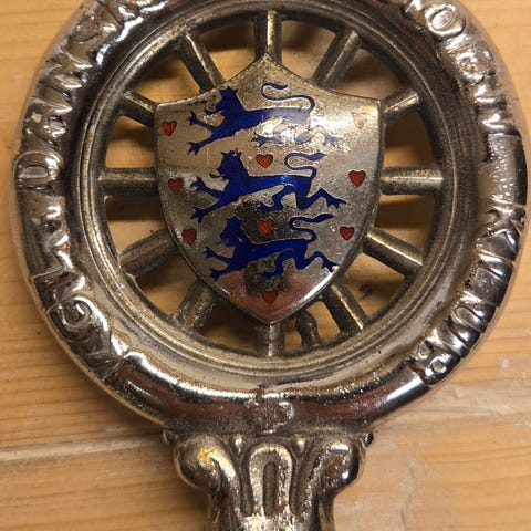Mærke / Emblem til bil. , FDM, 1984, Forenede Danske Motorejere (FDM). Mærke / Emblem til bil. Bronze med Emaljeskilt