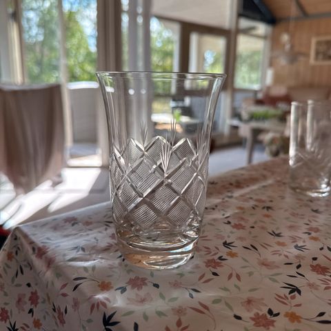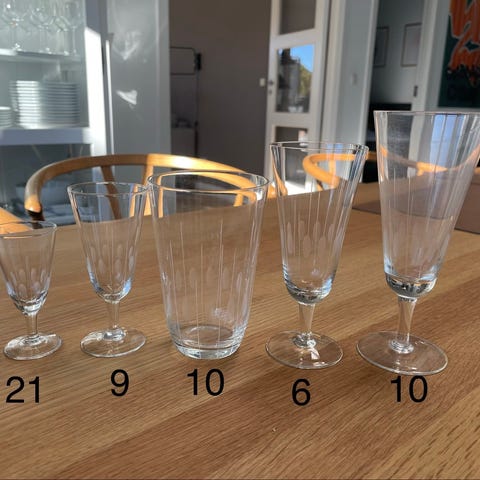 Glas, Komplet glas samling, Lyngby Glasværk, Smuk komplet samling retro glas fra Lyngby Glasværk, serie hedder Hanne. Enkel stillet form med håndsleben dekoration. Alle glas er fuldstændig intakte, rene, uden skår og pæne. Sælges helst samlet.