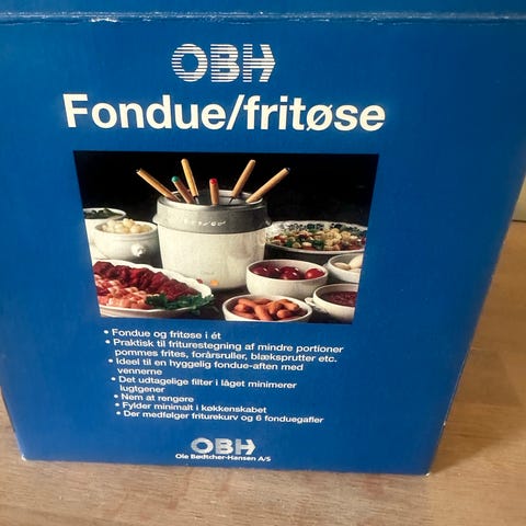 Fondue, OBH, Fin stor fondue, ny ubrugt. Skifferbund, masser at spyd og tilbehør. Fast pris. Fixed price no bidding.