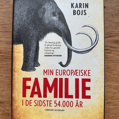 Min europæiske FAMILIE i de sidste 54.000 år, Karin Bojs, emne: naturvidenskab, Udgivet af Lindhardt og Ringhof i 2016 i 1. udgave, 1. oplag i hardcover med smudsomslag.