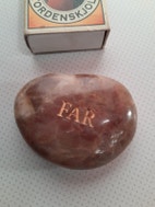 Andre samleobjekter, Sten, Sten graveret med "FAR" i guldfarve, 5,2x4cm. (lot 226)
