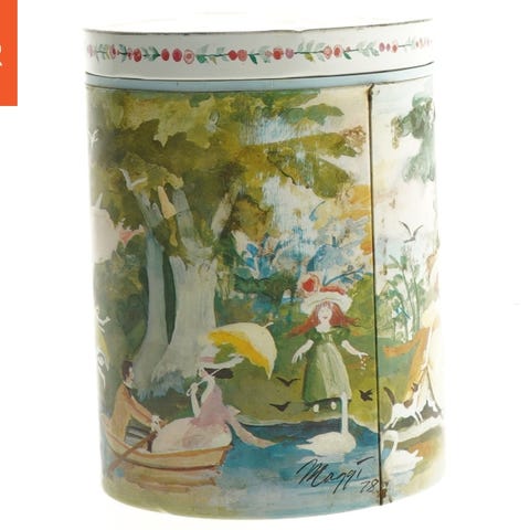 Kunstnerdåse fra Irma, Maggi 78, En bedårende smuk og velholdt kunstnerdåse med yndige motiver i pastelfarver.