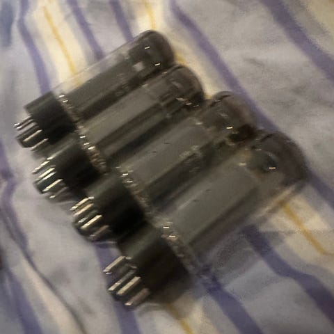 Brugt under 100 timer. Label Philips. Købt hos Pyndt dengang han var der. Skriften er godt slidt. Teknisk er røret i perfekt stand.