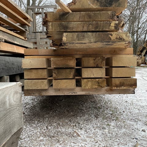 Prisen på lignende brugt træ på genbyg.dk er 550 kr meteren.