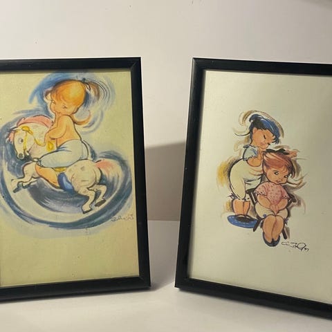 Originale christel reklamer, Originale gamle reklamer fra gamle ugeblade illustreret af Christel. De er ovenikøbet indrammet I samme retrostil som man gjorde dengang i 60'erne med christel tegningerne. Motiverne er fundet ved at jeg har gennemgået mere end 15.000 gamle ugeblade. Den store er kun fundet en eneste gang.mpl 14x31 pris 350 og 25x34 Pris 575 kr