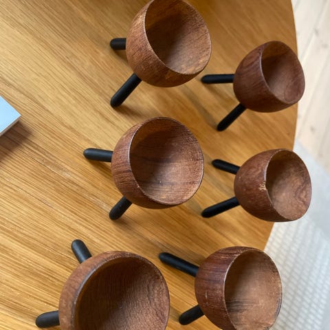 Andet, Ægge bæger af teaktræ, Dansk design, Vintage 6 stk æggebæger af teaktræ