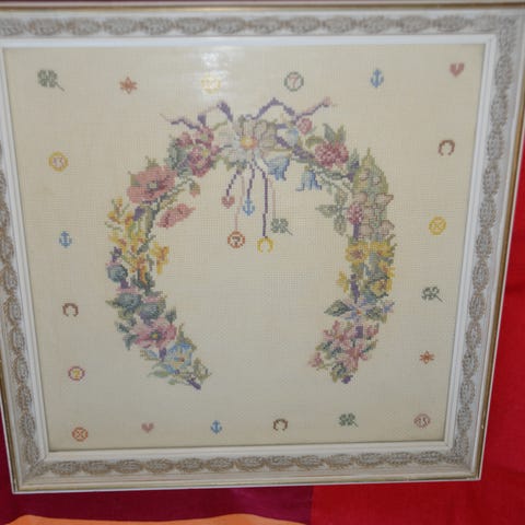 Broderi, Broderet, motiv: Hest, b: 66 h: 56, Skal sælges billigt og hurtigt giv et bud. Guldramme med glas og ophæng