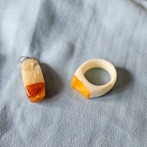 Rav, Sølv, Vintage Sølvring med rav