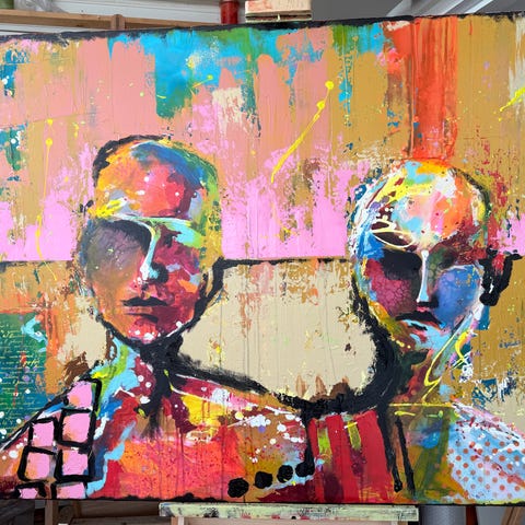Akrylmaleri, Ikke sign, motiv: Animation/Tegneserie, b: 52 h: 42 - efter aftale vil maleriet naturligvis kunne sendes