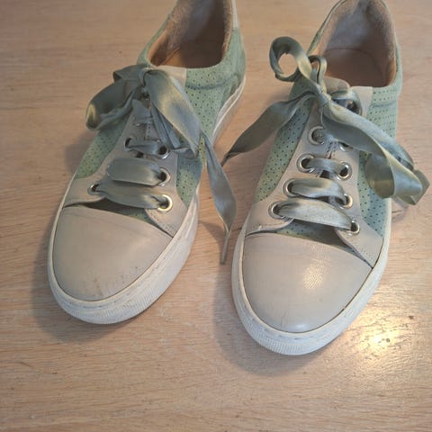 Sneakers, str. 40, Billi Bi, Guld, beige og brun, Gummi, stof og ruskind, Næsten som ny, Håndlavet Billi Bi sneaker udført i ruskind. Sneakeren er detaljeret med patchworks i guld, brun og beige.