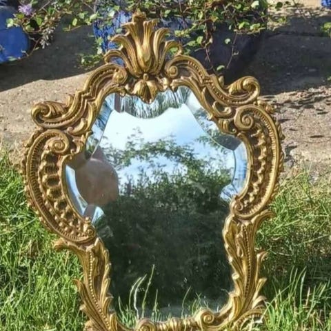 Messingspejl, b: 38 d: 29, Enkelt og elegant messingspejl.