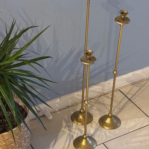 3 stk Retro gulvlysestager, I rustet jern. Smitter ikke af, de er lavet sådan. Højde: 106-96-86 cm.