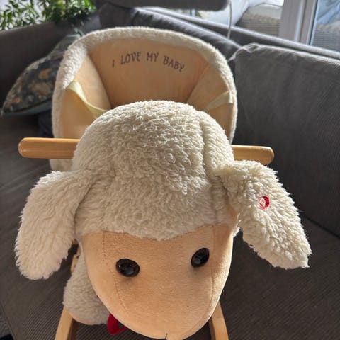 Gyngehest, Teddykompaniet Gyngelam, Sælger fint gyngelam fra Teddykompaniet der fremstår stort set som ny. Fra røgfrit hjem. Betrækket/pelsen kan vaskes, men har aldrig været taget af.