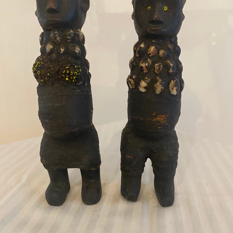 Figuren kommer fra Prins Henriks samling der blev sat til salg af Dronning Margrethe på Bruun Rasmussen efter Prins Henriks død i 2018,. Denne skulptur bærer stadigt klistermærket "H" signalerende at den har tilhørt Prins Henriks Samling af Afrikansk kunst, samt auktionsklistermærket fra Bruun Rasmussen.