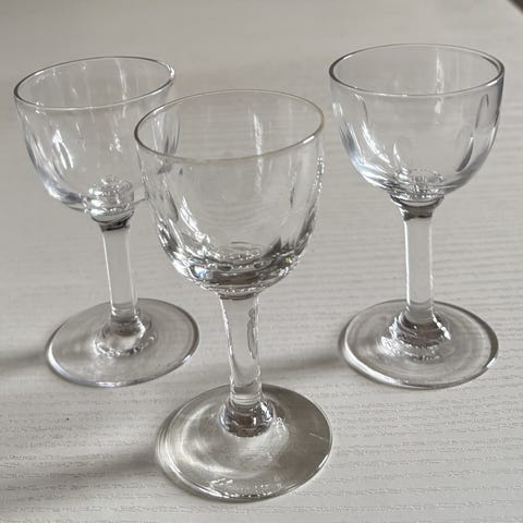 Glas, 2 portvinsglas - antikke, perfekt stand, lidt uens - håndlavede. H: 11,6 cm.