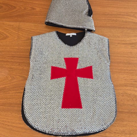 Udklædningstøj, Ridder-dragt, Der står ikke størrelse i. Min vurdering er 8-9 år.