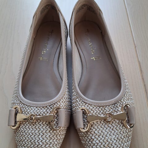 Fine sommerballerinaer med blondeagtigt blomsterstof i klare blå og lyserøde farver. Kun brugt få gange, da formen ikke rigtig passer til min fod. De er smalle ved tæerne. Betaler du desuden porto sender jeg også gerne.
