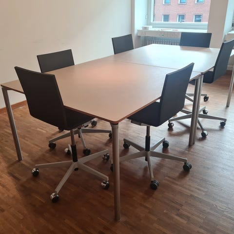 Mødebord med 4 stole i skind