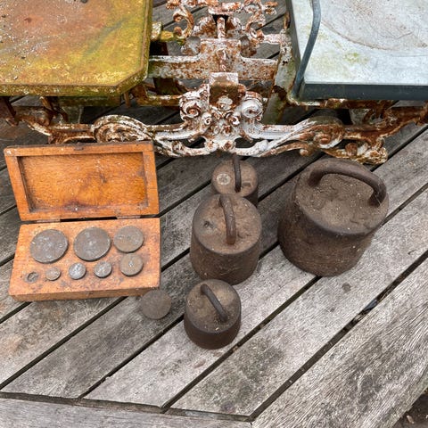 Antik vægt incl. original kasse lodder, 100 år gl.,