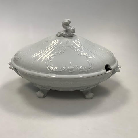 Porcelæn, Lågskål æske smykkeskrin , Royal Copenhagen Juliane Marie, Fineste lille antik æske / skrin med låg