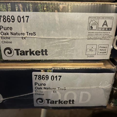 Laminat, Tarkett Lamin’Art , 8x327x1291 mm, 5,064 kvm, 2 pakker Tarkett Lamin’Art Mellow Oak Beige i uåben emballage, varenr. 510013001. Dimension er 8x327x1291 mm, 2,532 kvadratmeter per pakke, der er 5,064 kvadratmeter i alt.