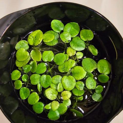 Planter, b: 3, Flydeplanter. Phyllanthus Fluitans. Cirka 2-3 cm i diameter. Hvis de får meget lys bliver de røde.