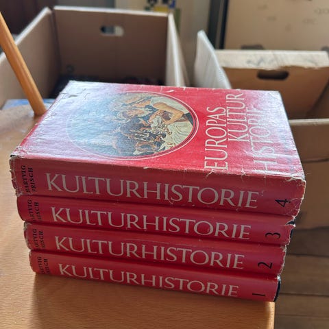 Europas kulturhistorie, Hartvig Frisch, emne: historie og samfund, Udgaven fra 1961. 4 bind indbundet med sort ryg med guldtryk (Ca. 2000 sider) med litteraturliste og fællesregister til hele værket med illustreret (Pænt sæt). Se mine andre bogannoncer, rabat ved køb af flere bøger. Kan sendes eller leveres i Storkøbenhavn, på Sydsjælland eller vejen imellem. Ny pris.