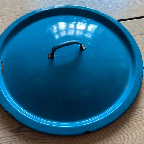 Blå emalje, Dørslag gryde låg