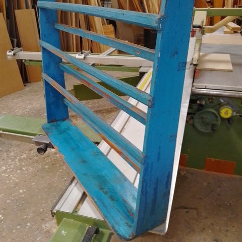 Tallerken hylde, Hjemmelavet fyrretræ. B 75 cm og H 92 cm.