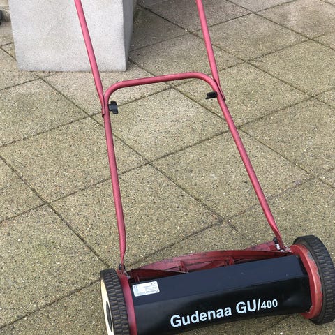 Håndskubber, Gudenaa, En ældre plæneklipper man skubber med hånden
