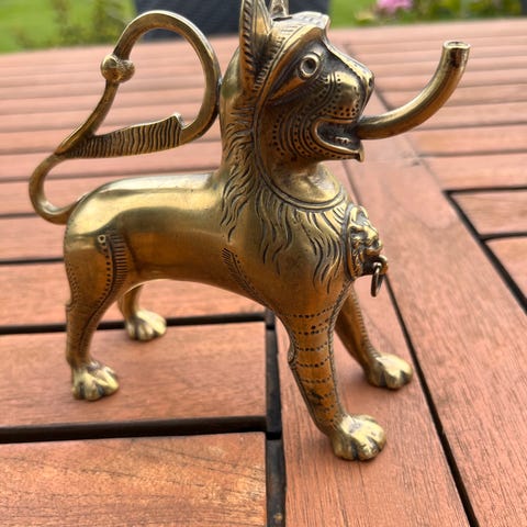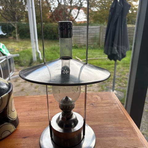 Olielampe, Antik olielampe, metal fod med messingfinish, brænder i messing.