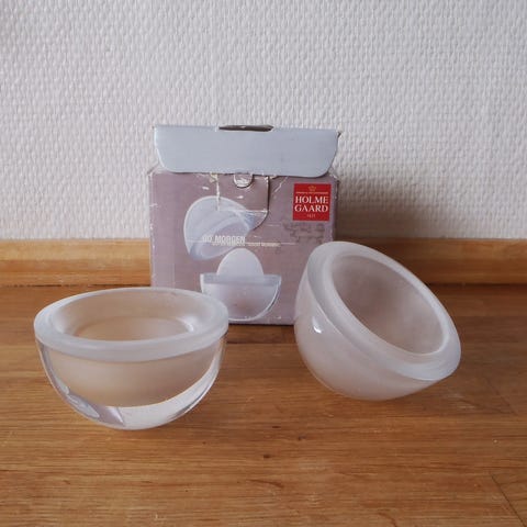 Holmegaard glas æggevarmer, Ca 20 år gammel. Ca 9,5cm høj og 7,5cm i diameter.