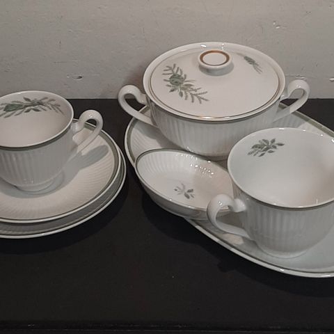 Fajance, Dyb tallerken kagetallerken tekop sovsekande , Royal Copenhagen, 4 All seasons af Grethe Meyer