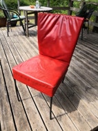 Spica stol i rødt læder fra Gijs Papavoine for Montis. Flotte buede tynde sorte ben, rødt læder med lynlås på bagsiden.