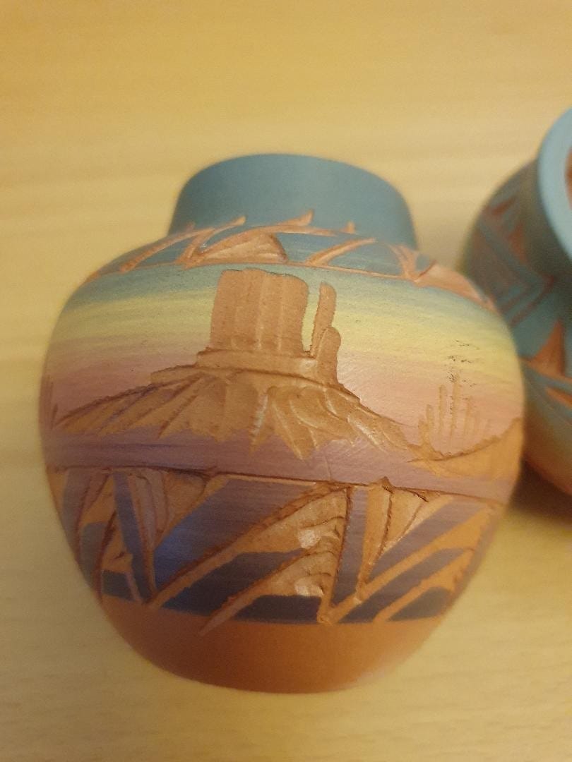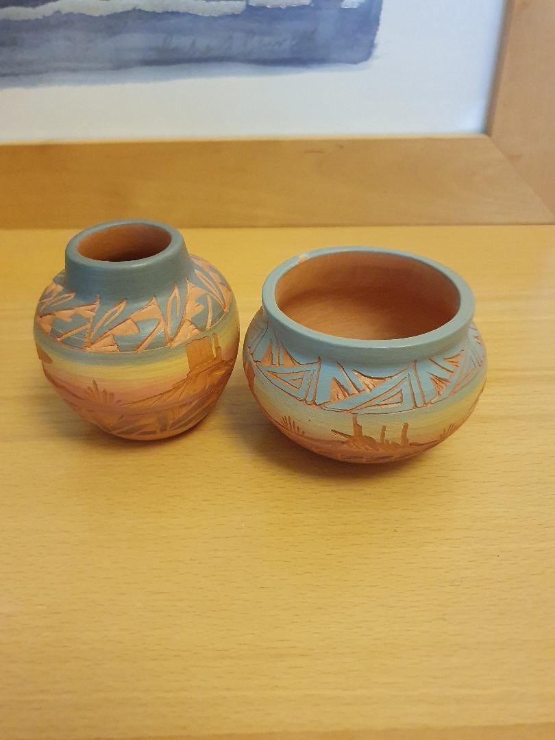 Andre samleobjekter, Navajo Native Pottery, 2 flotte potter Fra Navajo Indianerne. Den inden har en lille glasur fejl i toppen, men ellers virkelig flotte.
