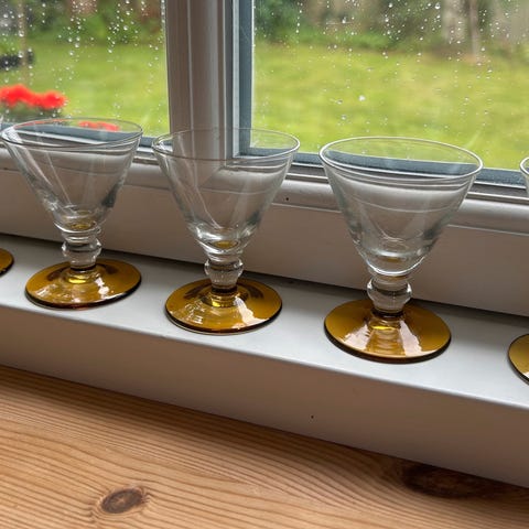 Rund stilk, slebet kumme. Smukke og fejlfrie. H: 13,2 - 14,2 cm. 3 styk. ( Jeg har flere variationer, højde og slibning )