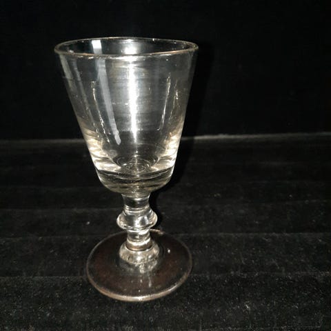 mundblæste med skarp afbræk, smukke, velholdte, konisk kumme på kort stilk med knap - på bred fod. Indhold 0,1 L. Lidt varierende størrelse 11,0 - 11,5 cm.
