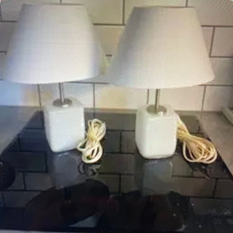Lampe, Holmegaard Kubus, Holmegaard Kubus-lamper i opal hvid glas med kvadratisk fod. Den lille er 12 cm høj og den store 30 cm. Lamperne er i perfekt stand.