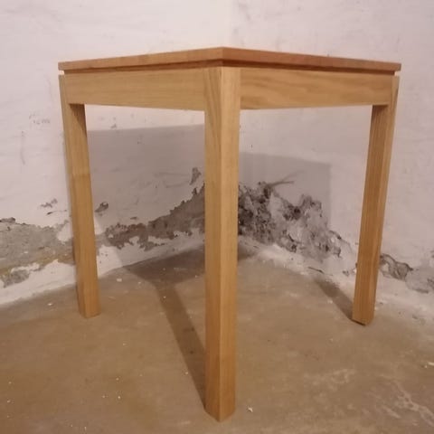 Egetræsbord, hjørnebord, Egetræsbord med ben der er 10x10 cm bordet er L 75 cm. B 75 0g højde 50 cm. Det er tungt da det er rent træ ikke fi`ner