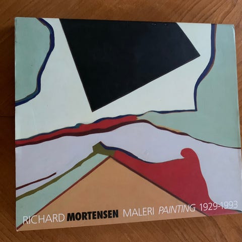 Og så et abstrakt maleri af Tom Krestesen fra 1964 b 70 X h 80 desværre er udklip forsvundet men jeg har affotograferet dem. cm kr 2000