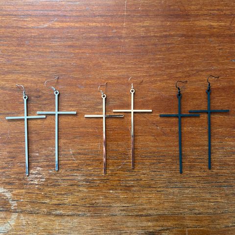 Øreringe, guld, Korsørering, Helt ny og ubrugt kors-ørering fra Hinnerup Optik. Guldbelagt. Nypris 250 kr. Sælges billigt pga fejlkøb i min søns stil.